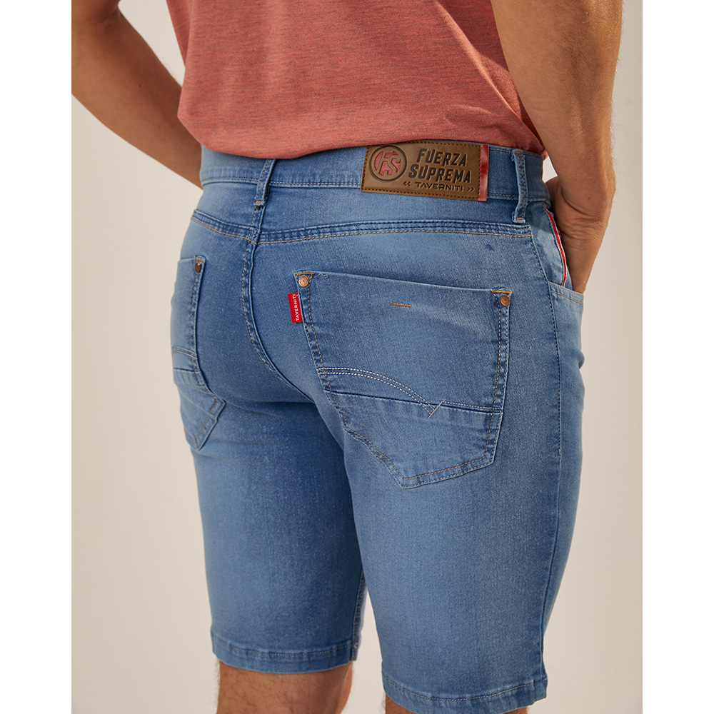 Bermuda tiro intermedio, calce Slim. Bolsillos traseros con bordado y pliegue recto. Linea Fuerza Suprema. • Elastizado • Composición: 98% algodón, 2% elastano.