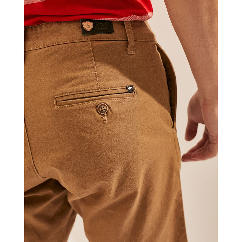 Bermuda de garbardina corte chino, tiro intermedio y calce slim con pinza en trasero. • Elastizado • Composición: 98% algodón, 2% elastano.