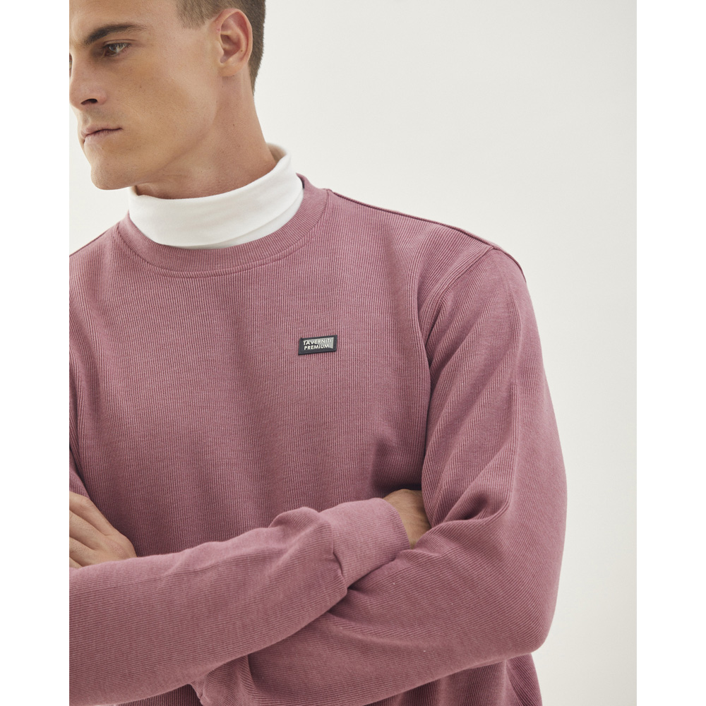 Buzo básico escote redondo con calce regular de tejido acanalado liviano que llamamos flat back de algodón, mangas largas con puños que otorgan un excelente ajuste en morley elastizado al igual que la cintura y el cuello.