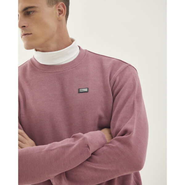 Buzo básico escote redondo con calce regular de tejido acanalado liviano que llamamos flat back de algodón, mangas largas con puños que otorgan un excelente ajuste en morley elastizado al igual que la cintura y el cuello.