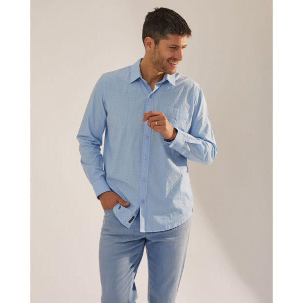Camisa manga larga de calce clásico. Con bolsillo al frente. Tela poplin estampado. Composición: 100% algodón.