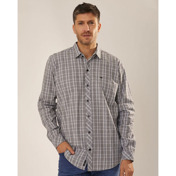 Camisa manga larga con bordado al frente. Tela poplin a cuadros. Composición: 100% algodón.