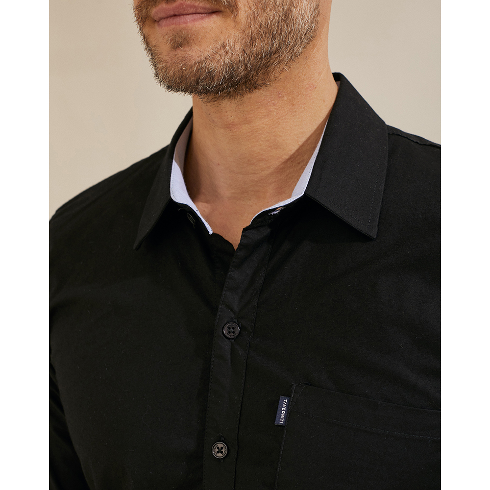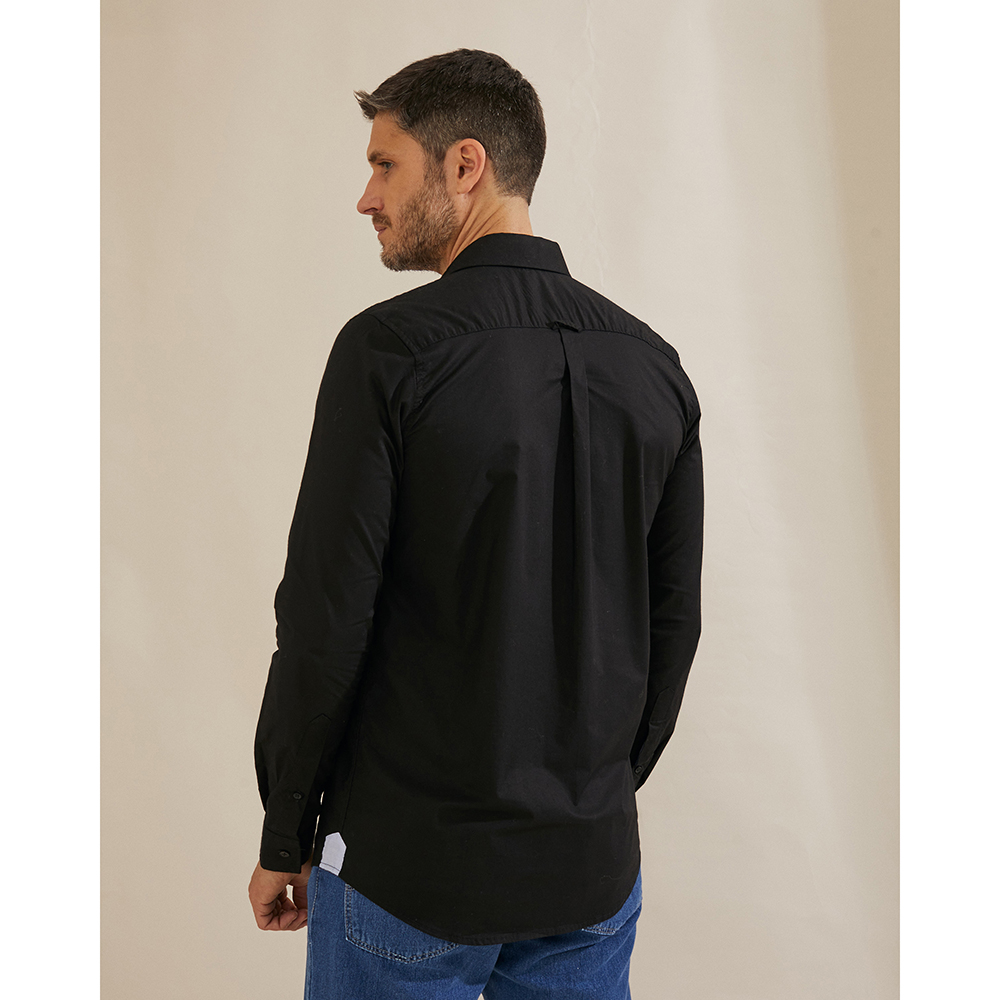 Camisa manga larga, de calce clásico. Con bolsillo bordado al frente. Tela poplin liso. Composición: 100% algodón.
