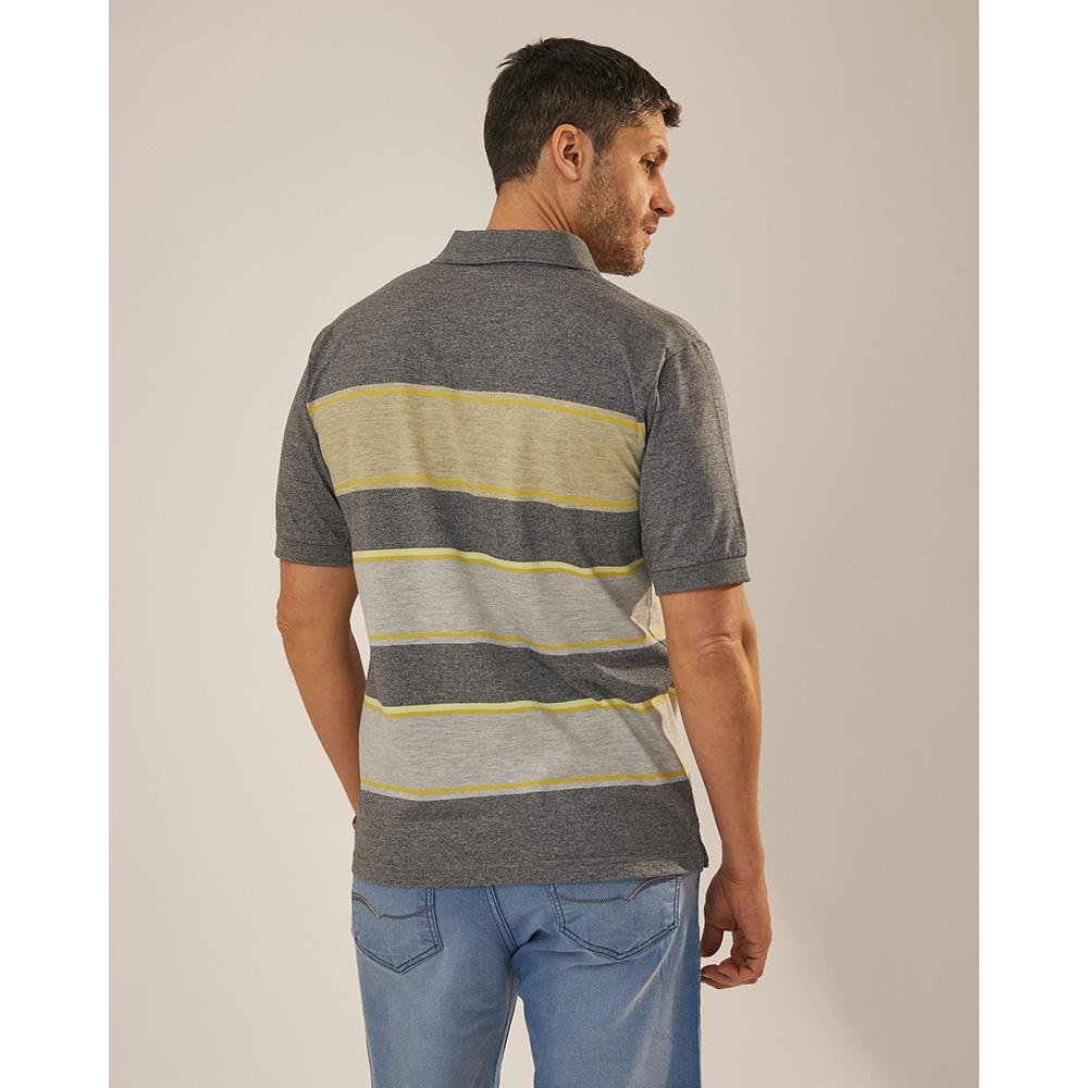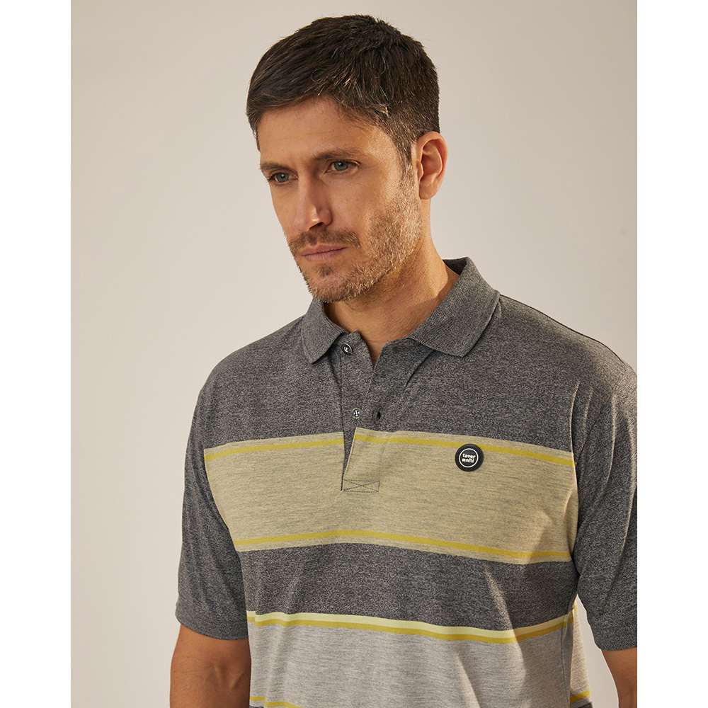 Chomba rayada en suave jersey de algodón. Calce regular fit y manga corta con puños que permiten un excelente ajuste. Presenta un cuello polo en un tejido de algodón con botones personalizados y una grifa de goma de la marca en el pecho.