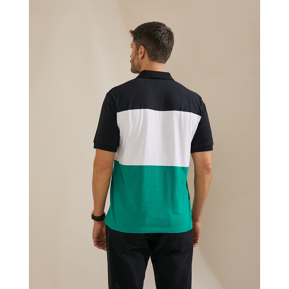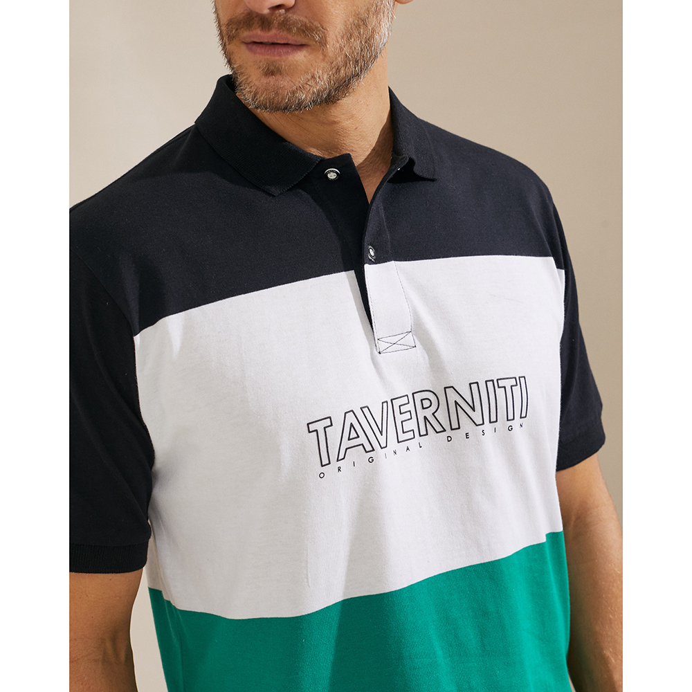 Chomba rayada en suave jersey de algodón. Calce regular fit y manga corta con puños que permiten un excelente ajuste. Presenta un cuello polo en un tejido de algodón con botones personalizados. Lleva una estampa tipográfica a en la centro del pecho.