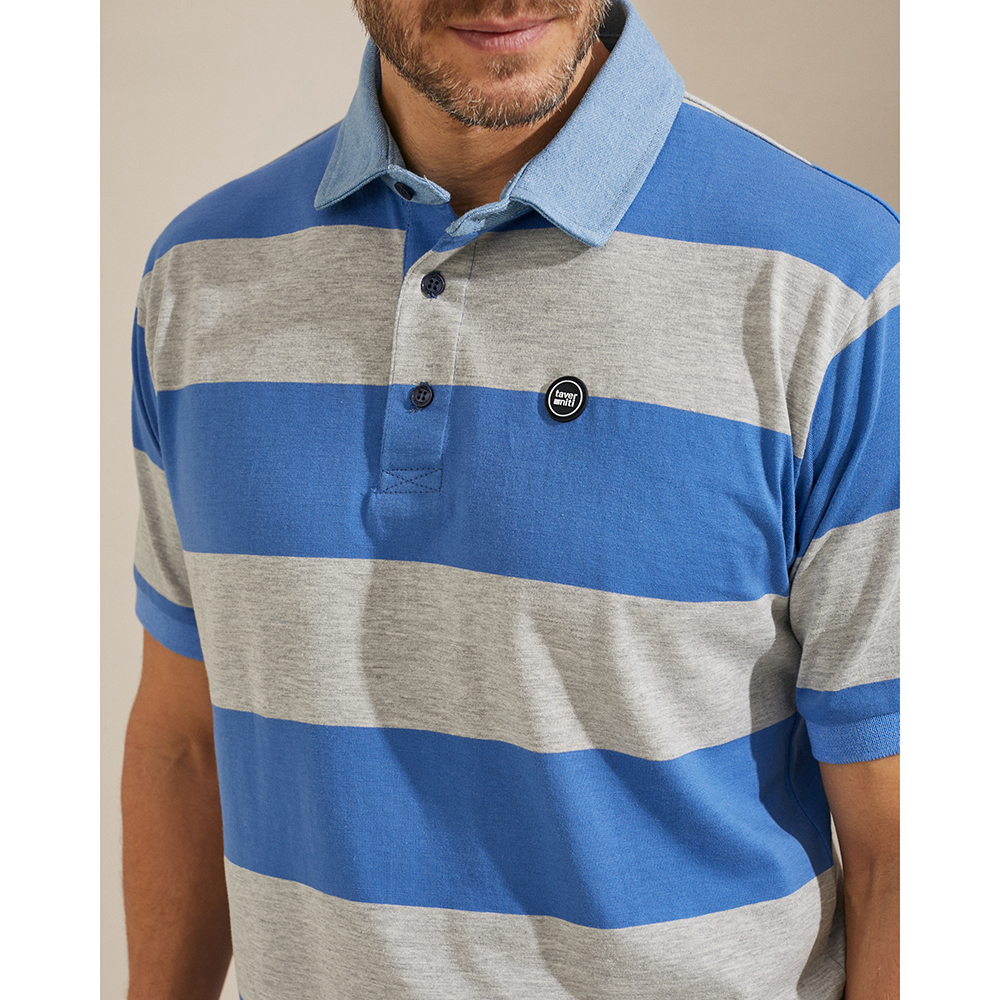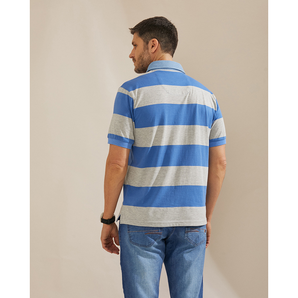 Chomba rayada en suave jersey de algodón. Calce regular fit y manga corta con puños que permiten un buen ajuste. Cuello de jean con botones al tono y una grifa de goma de la marca en el pecho.