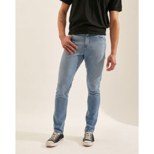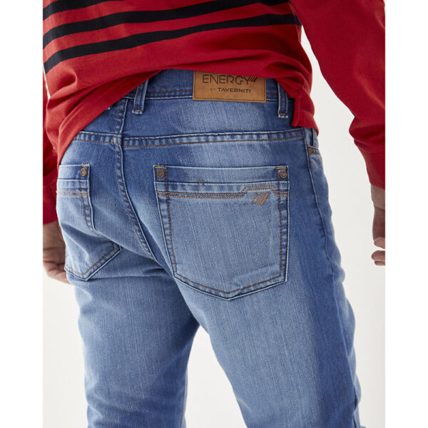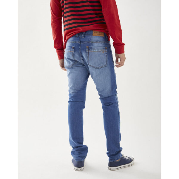 Jean tiro intermedio, calce slim y bolsillos traseros con pliegue. Grifa institucional en bolsillo trasero derecho. Serie Energy. •Rígido• Composición: 100 % algodón.
