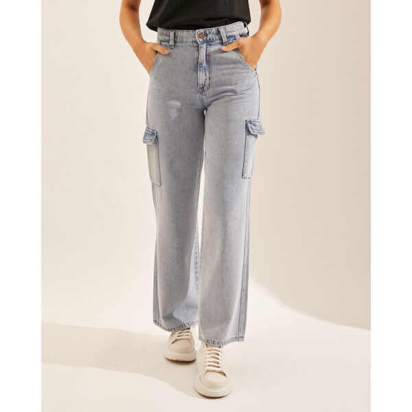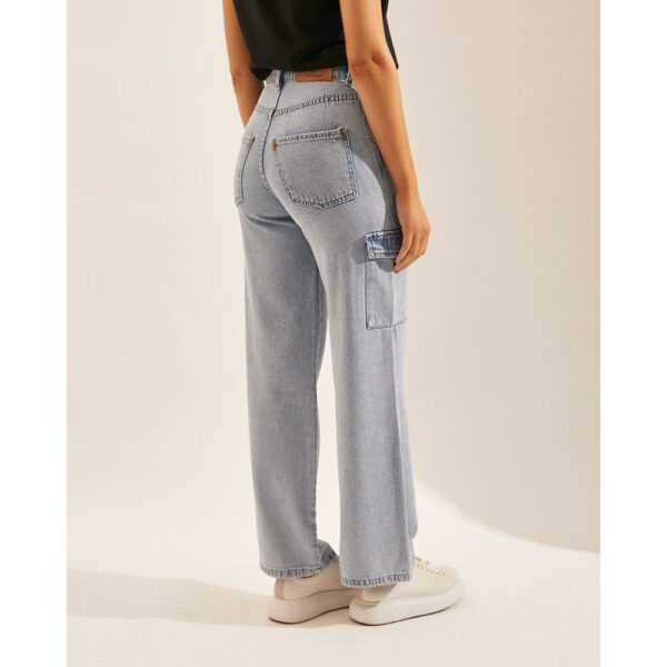 Jean tiro alto bota amplia wide. Bolsillos en los laterales estilo cargo. 100% Algodón.