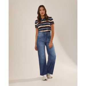 Jeans recto tiro intermedio 5 bolsillos. Detalle de chapa y bordado sobre bolsillo trasero. Confort. Composicion: 99% algodón, 1% elastano.