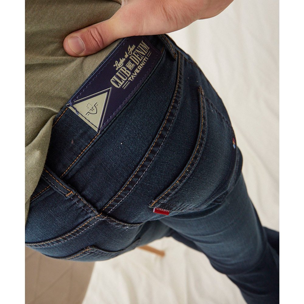 Jean tiro bajo, calce chupin. Bolsillos traseros con bordado. Serie Club del Denim. • Elastizado • Composición: 98% algodón, 2% elastano.