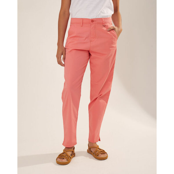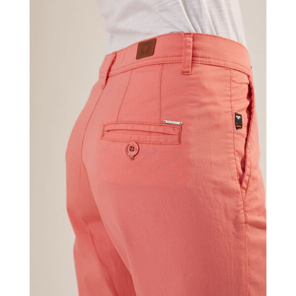 Pantalon estrecho de color tiro medio con bolsillo tipo chino. Elastizado. Composición: 98% algodón, 2% elastano.