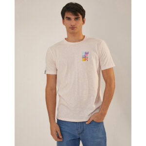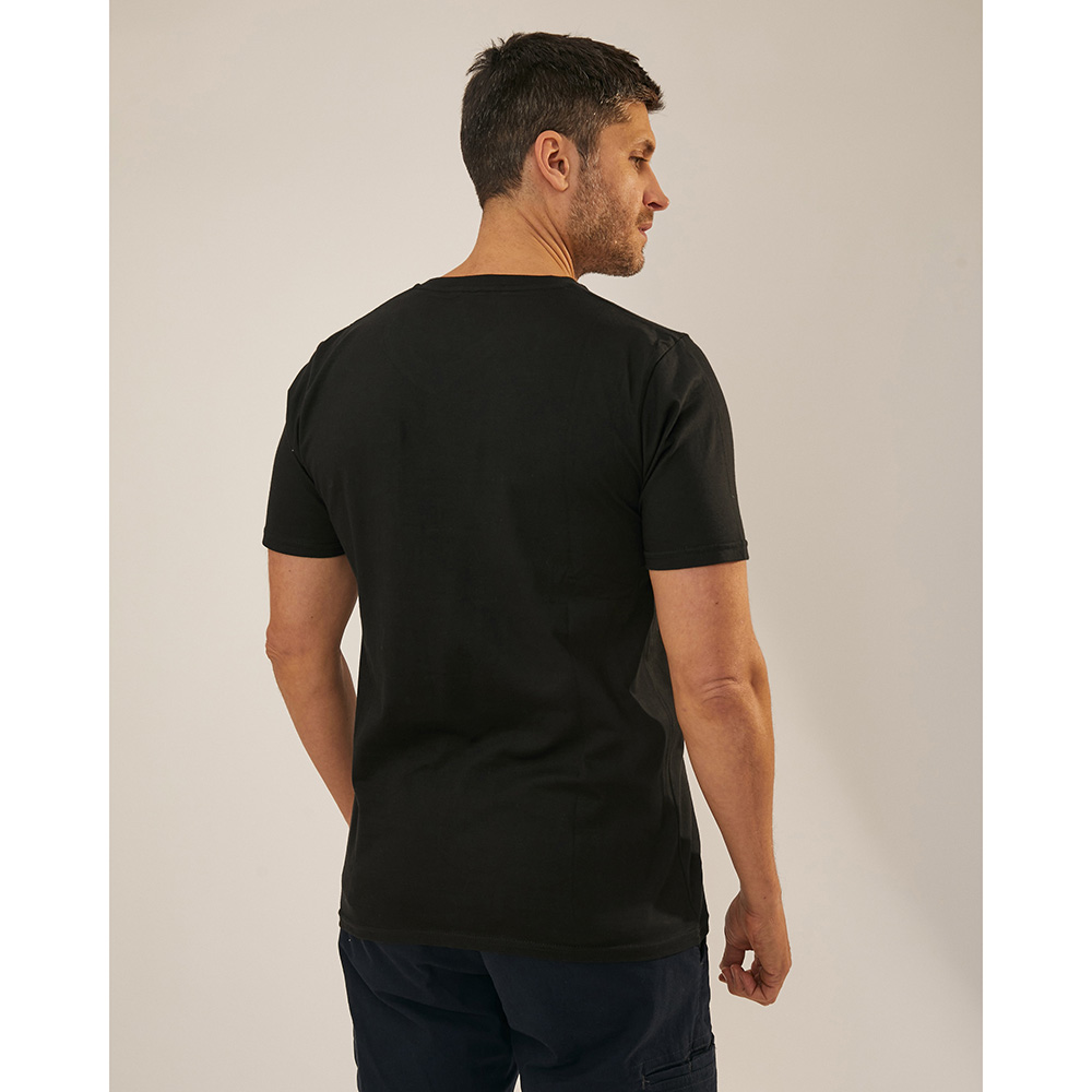 Remera básica de jersey de algodón gamuzado. Calce regular, manga corta y escote en V, con cuello en tejido elastizado. Lleva un logotipo bordado en el pecho.