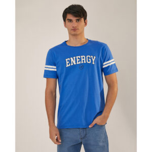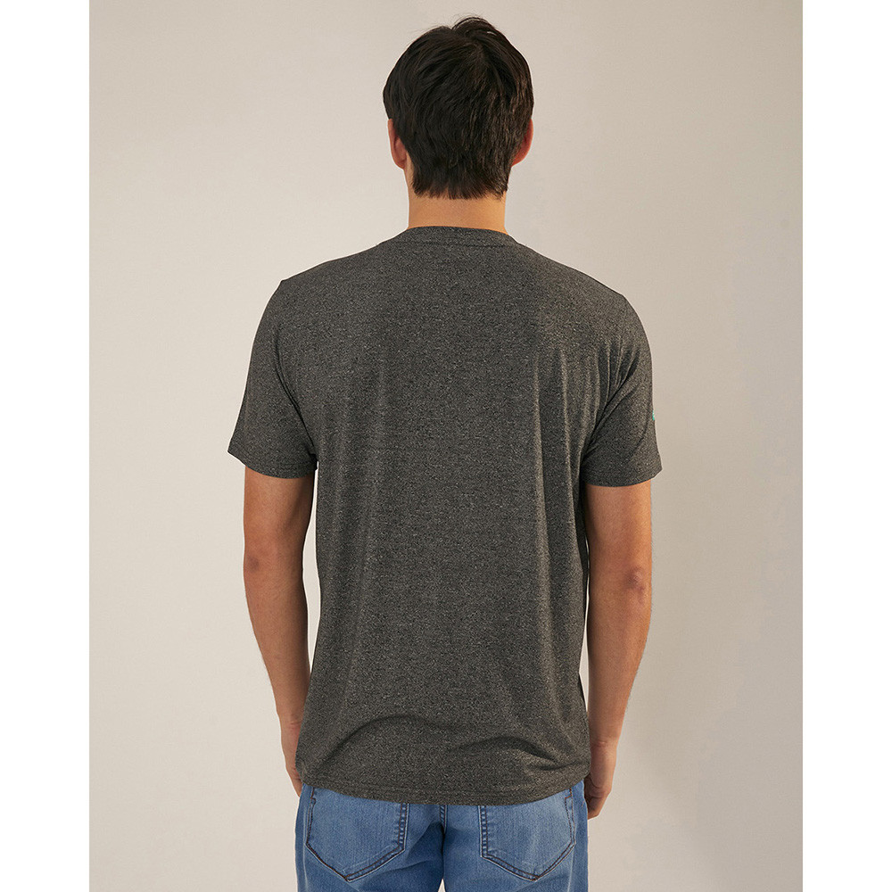 Remera moda estampada confeccionada en jersey de algodón elastizado con efecto marmolado. De calce slim fit, manga corta y escote redondo. Lleva una grifa de la marca en el ruedo, una estampa central en el delantero y un logo de la línea estampada.