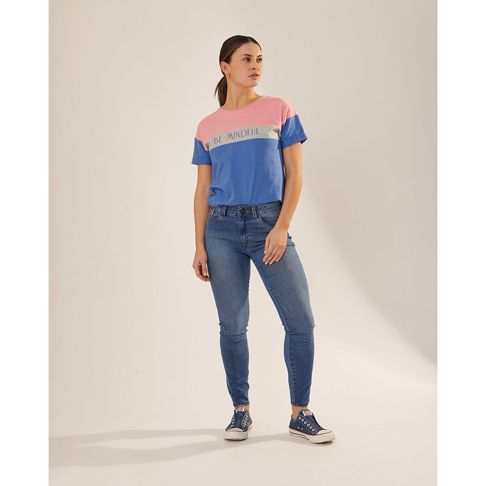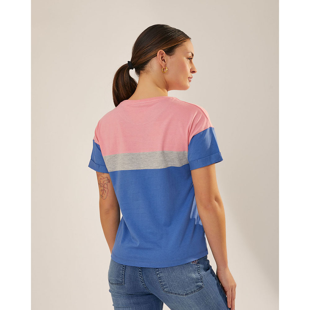 Remera escote redondo, silueta relajada y manga corta con puños rebatidos sujetos con pespuntes, en jersey de algodón rayado full hilado color. Tejido de mano extra suave y fresca.