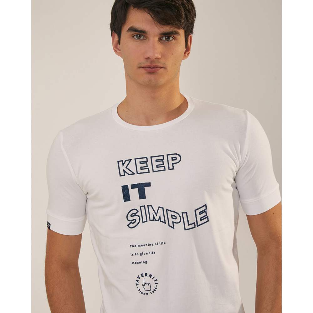 Remera estampada de algodón elastizado. Calce súper slim fit, manga corta y escote redondo en la misma tela.