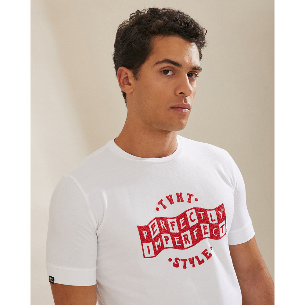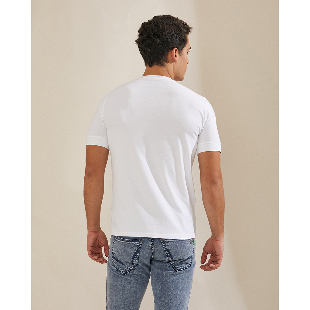 Remera estampada de algodón elastizado. Calce súper slim fit, manga corta y escote redondo en la misma tela. Composición: 94% algodón, 6% elastano.