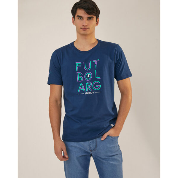 Remera estampada de jersey de algodón liviano de estilo urbano deportivo. De calce regular fit, manga corta y escote redondo con cuello en tejido elastizado. Lleva una estampa central en el delantero y otra en la manga derecha.