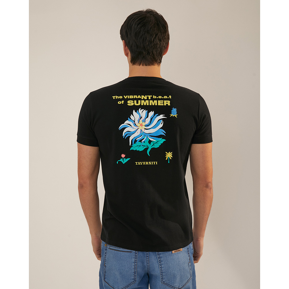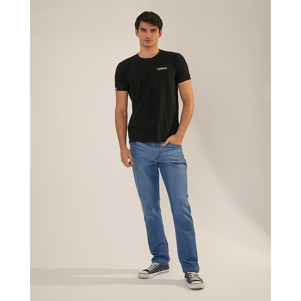 Remera de algodón elastizado, escote redondo de calce slim fit y manga corta con puños anchos que permiten un perfecto ajuste en las mangas. Presenta un logo estampado en el pecho y una estampa central en la espalda.