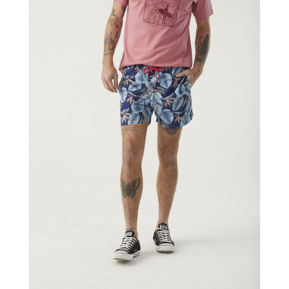 Traje de baño de nylon estampado con elástico en cintura y cordón de ajuste. Nylon 100%. Producción importado.